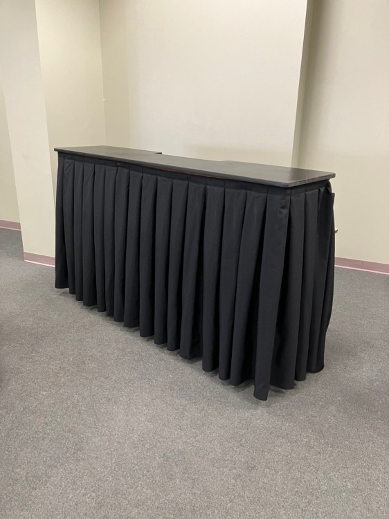 6' serving bar with drapeBuffet line- 3 banquet tables with black covers:6' serving bar with drape1Dropdown02680009_25541290000 Bar Setup– Effortless Service with a Sleek, Functional Design